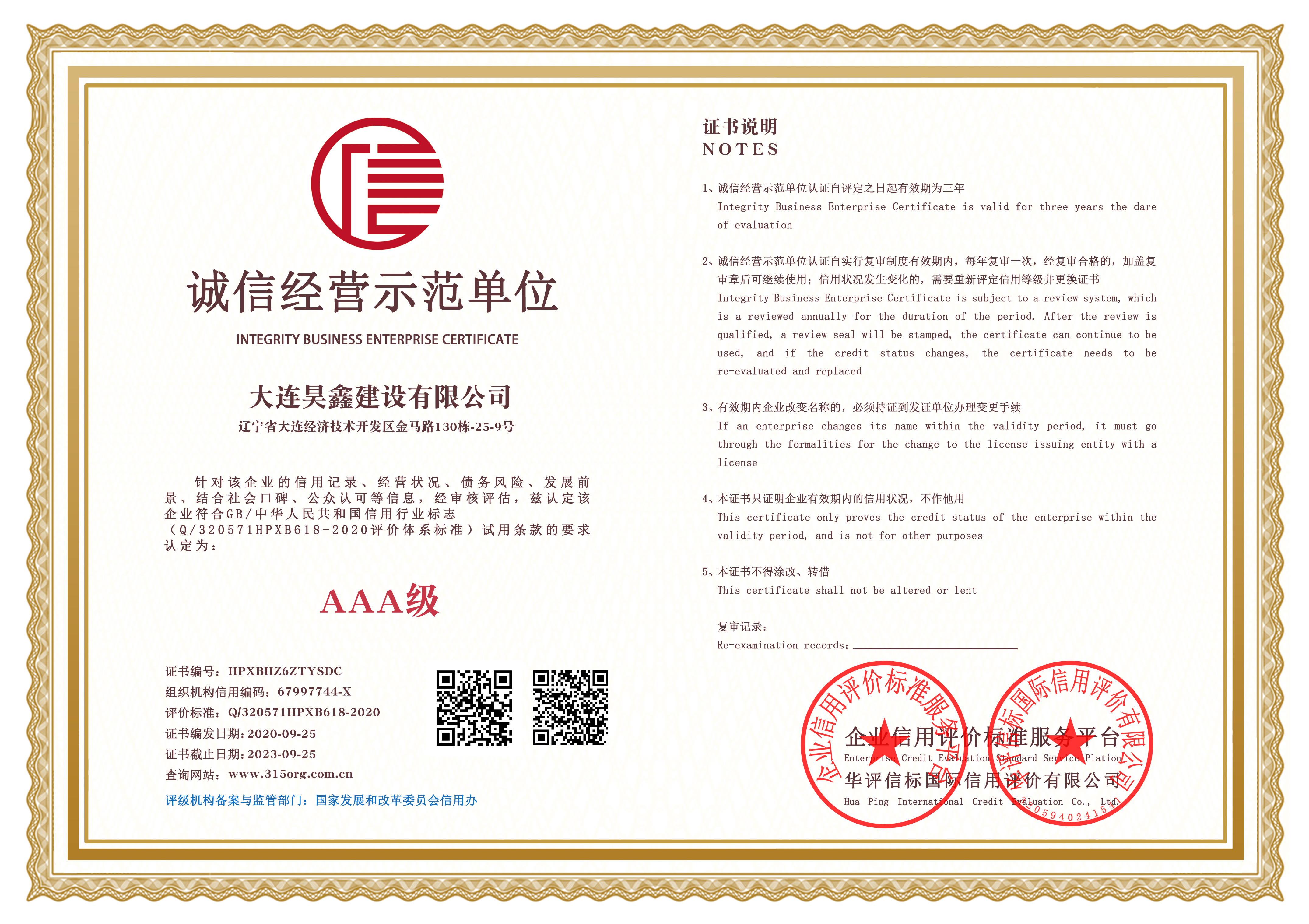 AAA企業(yè)信用等級